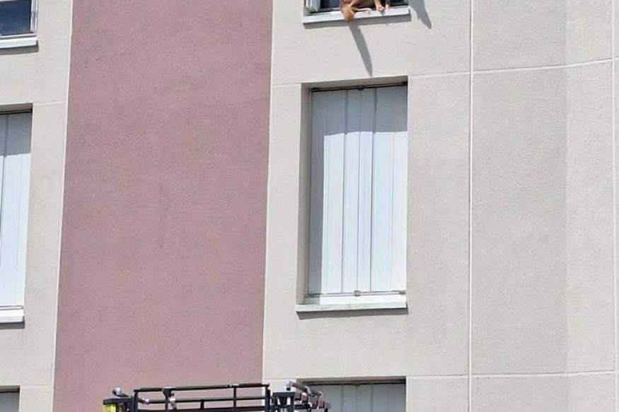 La jeune chienne, laissée seule quelques instants, aurait confondu le rebord de la fenêtre avec un balcon et s’est retrouvée piégée au-dessus du vide, incapable de revenir à l’intérieur. Les pompiers sont rapidement intervenus avec la grande échelle pour la secourir.