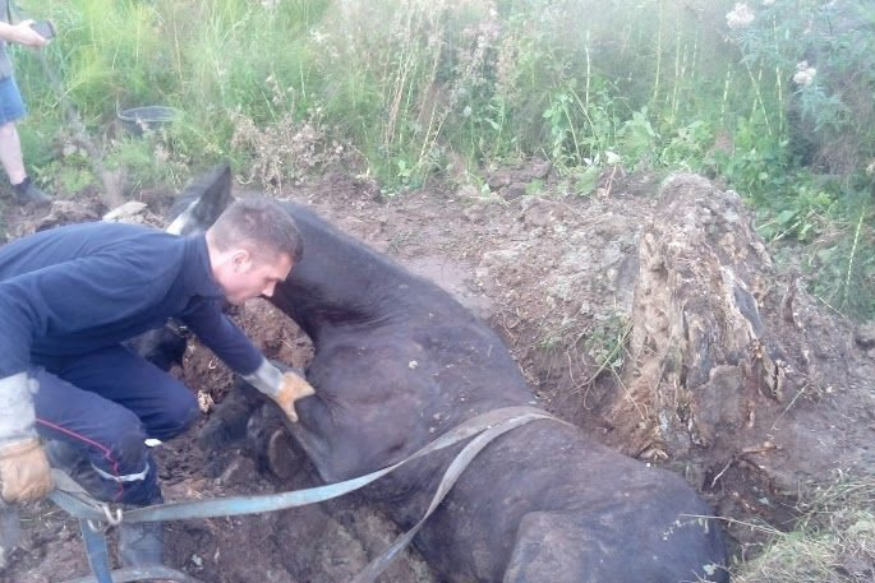 L’animal s’enfonçait dans la vase, si bien que les propriétaires ont dû appeler les pompiers à l'aide.