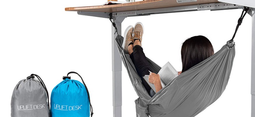 Envie d'une sieste discrète au boulot ? C'est possible ! La marque Uplift lance le premier hamac de bureau. Plutôt que de le suspendre entre deux branches, cet hamac est conçu pour s'accrocher sous le plan de travail de votre bureau. Une limite de 90kg est recommandée.
