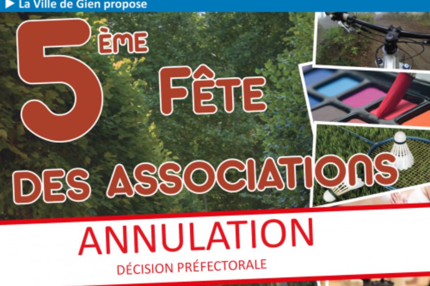 Radio Numéro 1 - La Mairie de Gien vient d'annoncer l'annulation de la 5ème Fête des Associations qui devait se tenir le samedi 5 Septembre au Port aux Bois. Une décision prise suite à l'arrêté préfectoral interdisant l'organisation de forums associatifs et de vide-grenier.